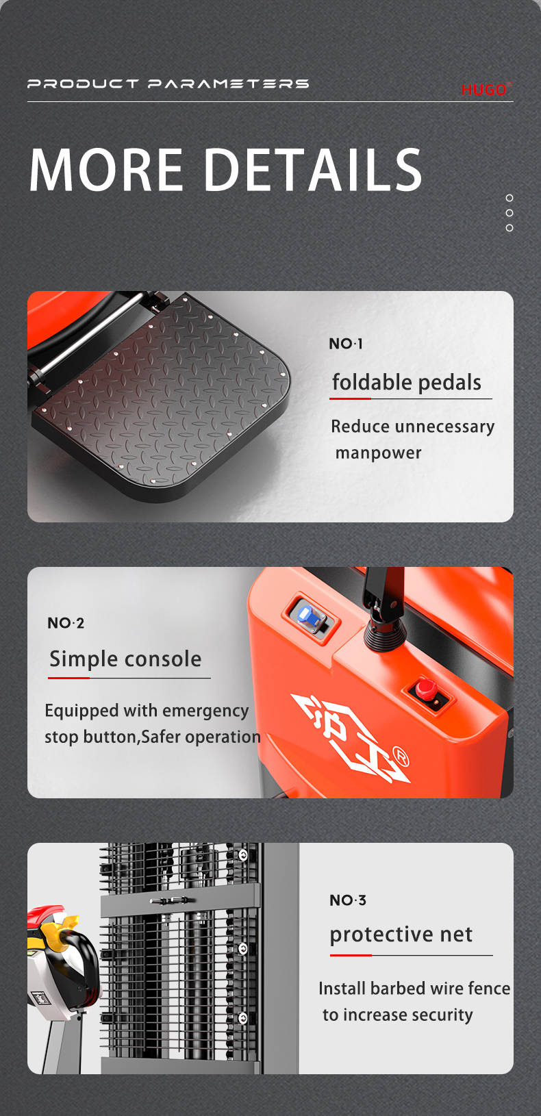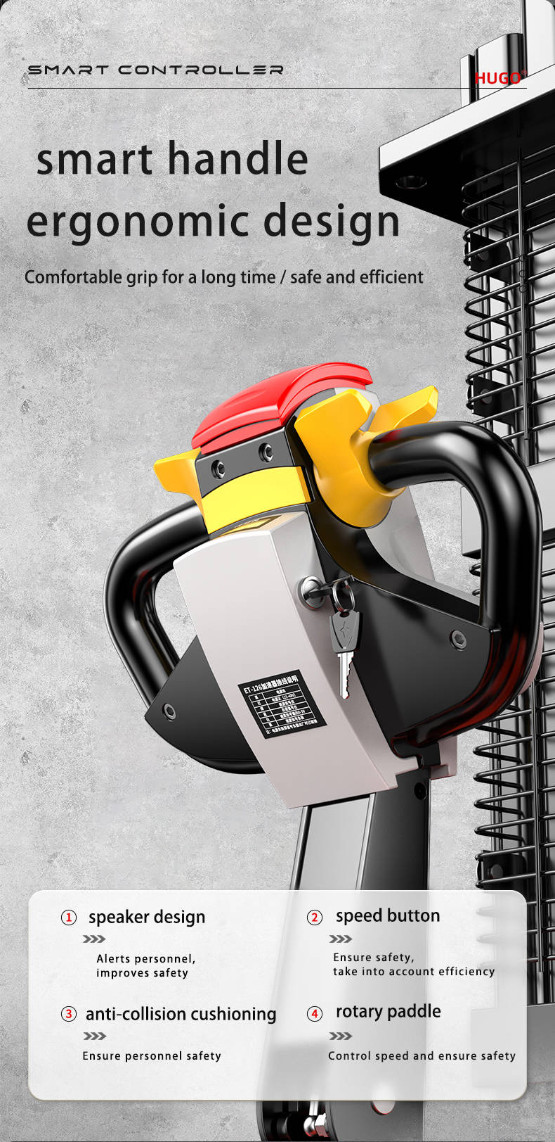 The stand-on fully electric stacker is an electric-driven stacker equipped with a platform for the operator to stand on while operating. It is suitable for warehousing and material handling tasks. With features such as efficient handling, ease of operation, and high safety, it allows for quick vertical lifting of goods through an electric motor. This type of stacker is widely used in factories, warehouses, and logistics centers, particularly in narrow spaces for stacking goods, improving work efficiency while ensuring the safety of the operator.