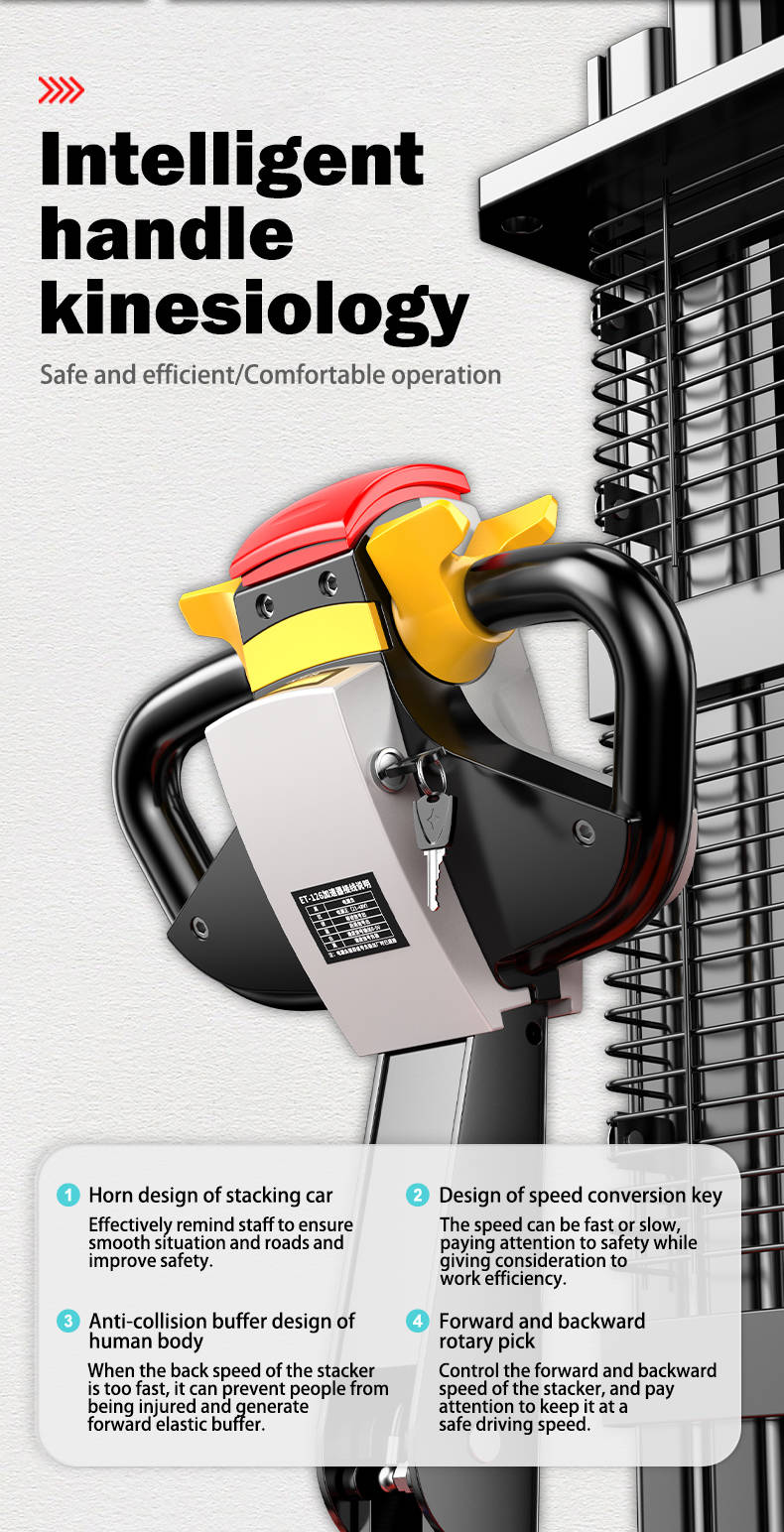 A walkie stacker is an economical and versatile material handling device with several advantages. Firstly, it offers straightforward operation, with the operator walking alongside the equipment and controlling the handling process through a push-pull handle or control panel. This simplicity makes it suitable for operators of varying skill levels. Its compact design allows it to operate in narrow work aisles and limited warehouse spaces, maximizing warehouse utilization. Additionally, walkie stackers are typically cost-effective, with lower maintenance expenses, contributing to reduced operational costs.
