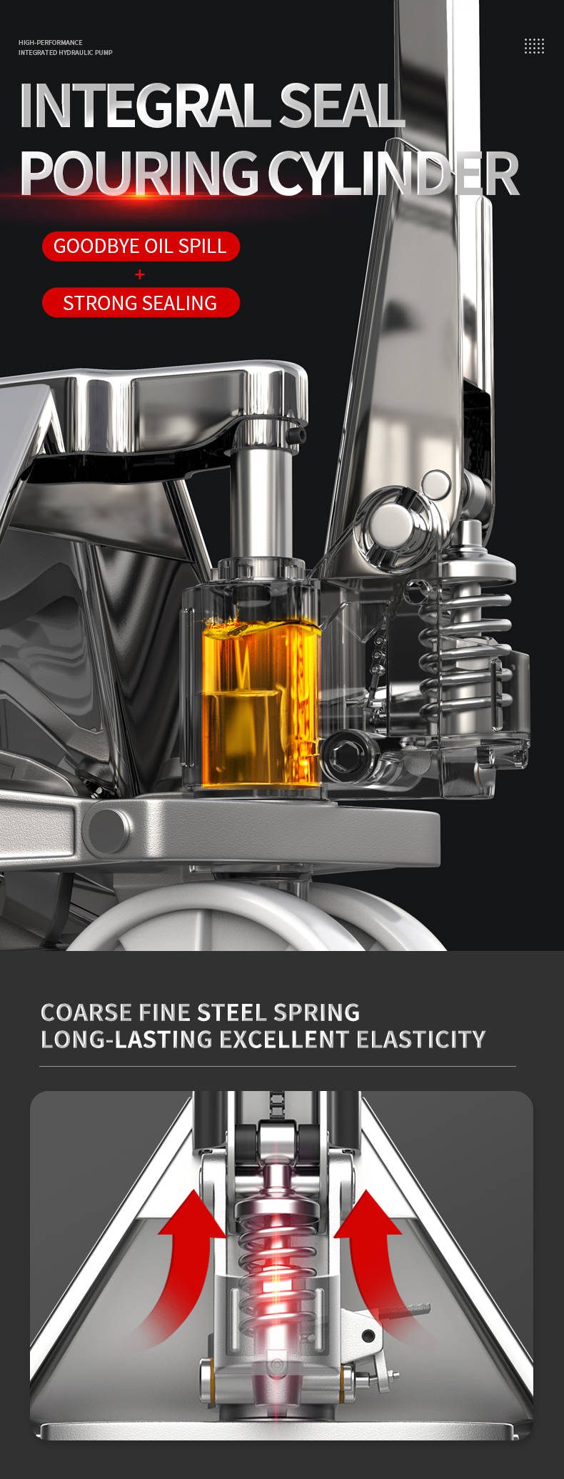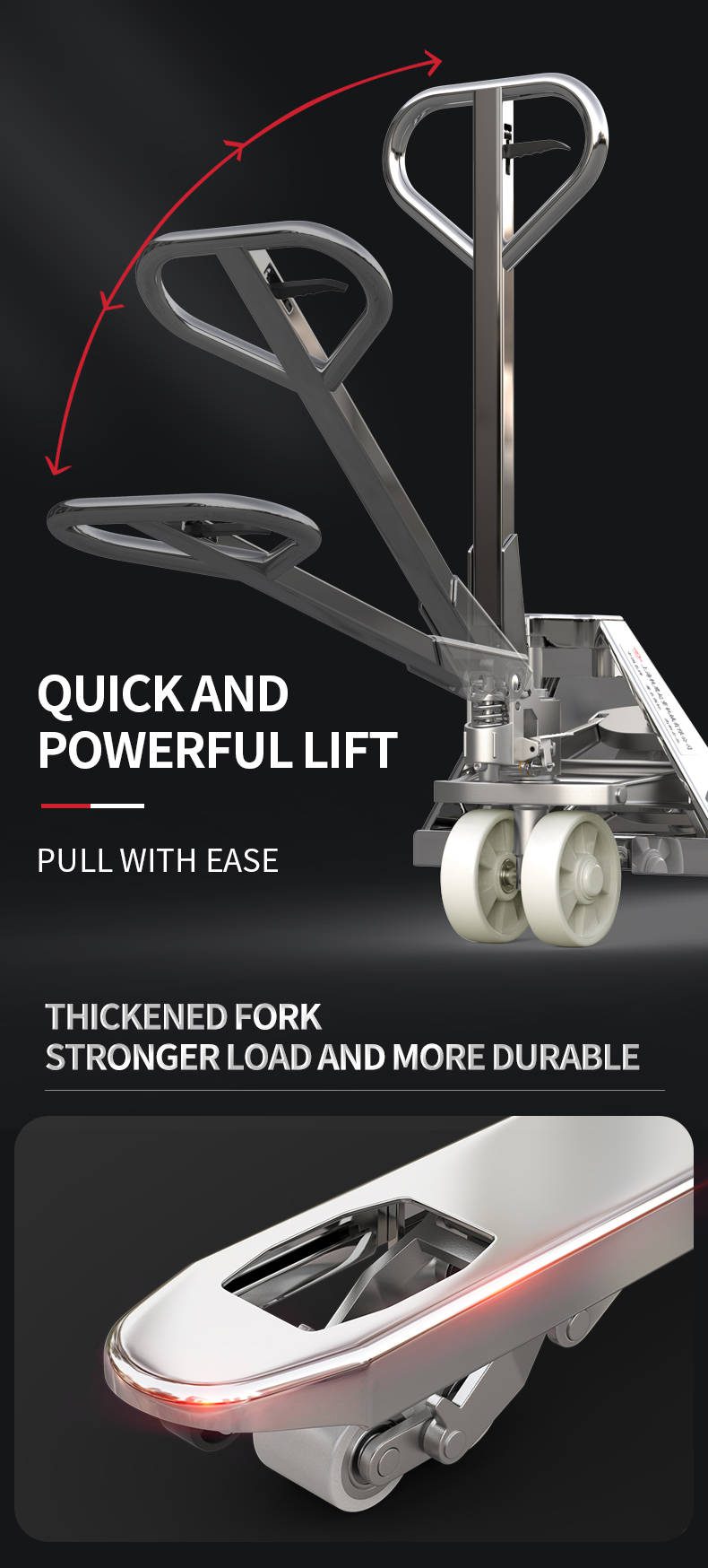 3) Entry/exit roller, easy to enter into the pallet, equipment with over-load valve, 3 position hand control, easy to use.